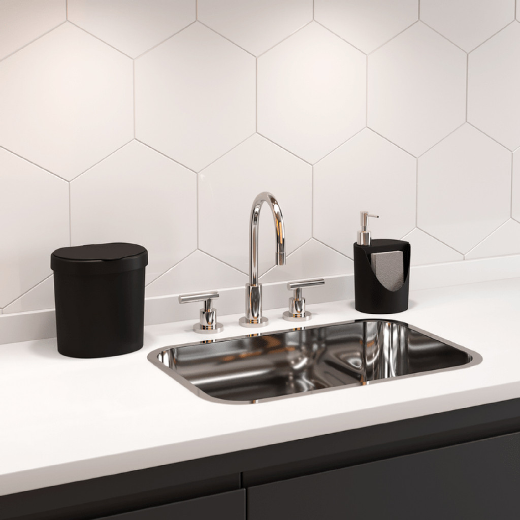 O Porta Detergente Romeu e Julieta 600ml Preto - Coza é um dispenser que otimiza espaço e organiza os acessório de pia. Permite colocar 600mL de detergente e possui um reservatório para a esponja. O porta detergente da marca Coza é feito em polipropileno, um tipo de plástico que apresenta maior resistência.