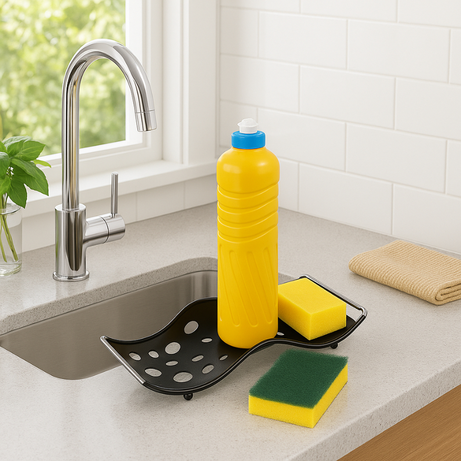 Porta Detergente, Sabão E Esponja Onda Preto N336-7