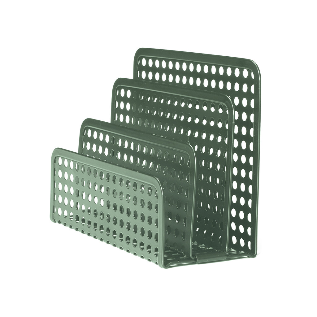 """:: esse é o porta documentos de mesa da OIKOS. :: prático: bacana para organizar documentos, revistas, papéis, envelopes, pastas e mais! :: decorativo: fica uma graça na decoração - vai bem no quarto, no escritório, na sala e onde mais você quiser. :: muitas cores: é só escolher a que você prefere – na nossa casa todas as cores são bem-vindas! :: versátil: com divisórias para deixar cada coisa no seu lugar! :: conteúdo visível: com o design vazado do metal dá para ver tudo que está organizado ali - ótimo para nunca mais perder aqueles papéis pela casa! :: resistente: feito em metal resistente garantindo mais durabilidade. :: medidas: 17,5x13,5x8,5cm"""