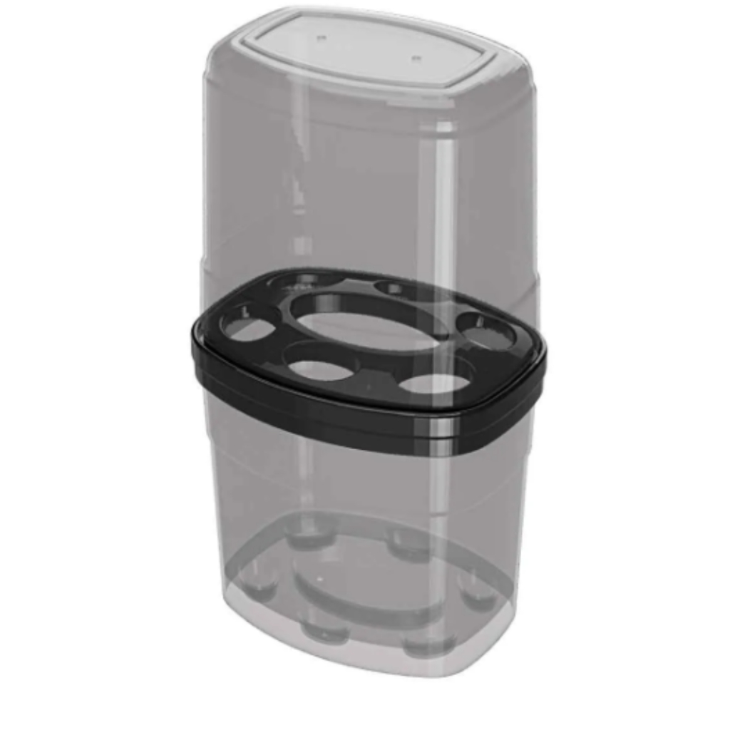 Porta Escova Dental De Pia Plástico Com Tampa Preto / Branco