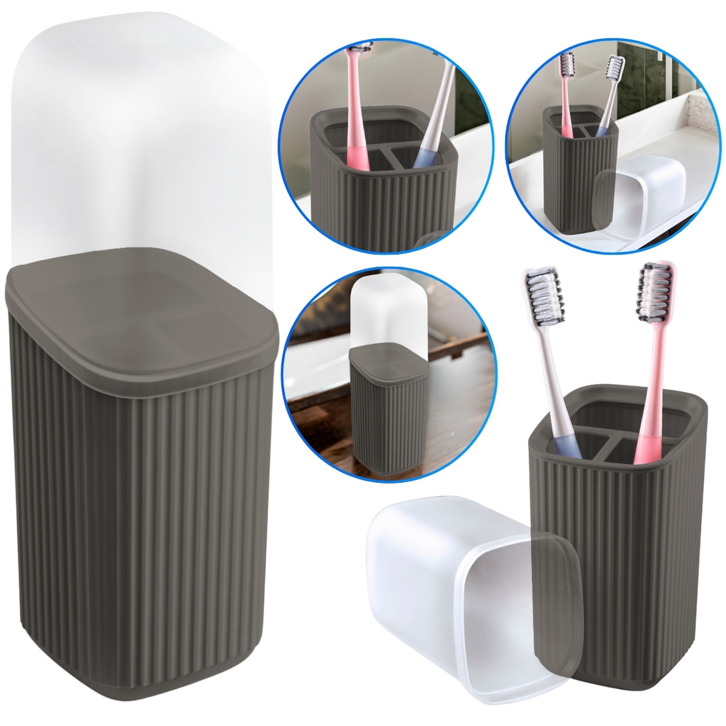 Porta Escova Dental De Pia Plástico Quadrado Com Tampa Moderno Luxo Banheiro Material Reforçado