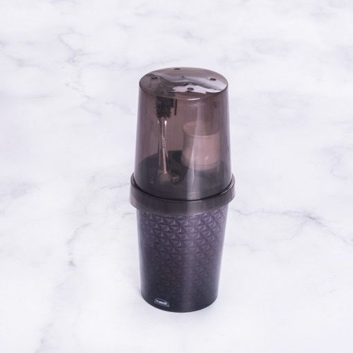 Mantenha sua higiene bucal em dia com praticidade e estilo! Apresentamos o nosso Porta Escova Dental de Pia Plástico Redondo com Tampa é a solução perfeita para organizar suas escovas de dentes e creme dental de forma higiênica e elegante. Feito com materiais de alta qualidade, este porta escova é durável, resistente e fácil de limpar, garantindo a segurança e a saúde da sua família. Design compacto e redondo que se adapta perfeitamente à decoração do seu banheiro. Tampa prática que protege suas escovas de poeira e bactérias. Capacidade de 430ml para armazenar múltiplas escovas e tubos de creme dental. Fabricado em plástico de alta qualidade, livre de BPA, seguro para uso diário. Características: - Dimensão: (Diâmetro x Alt): 9,0x20,8 cm - Decoração 3D super moderna em tons de preto e cinza, alinhado às principais tendências do momento. - Com divisórias para 1 creme dental e 3 escovas. - Com tampa para proteção. - Linha coordenada: com vários produtos para você compor seu ambiente. - Fabricado em polipropileno (PP). - Livre de bisfenol-A (BPA FREE). Aproveite suas compras Gratidão
