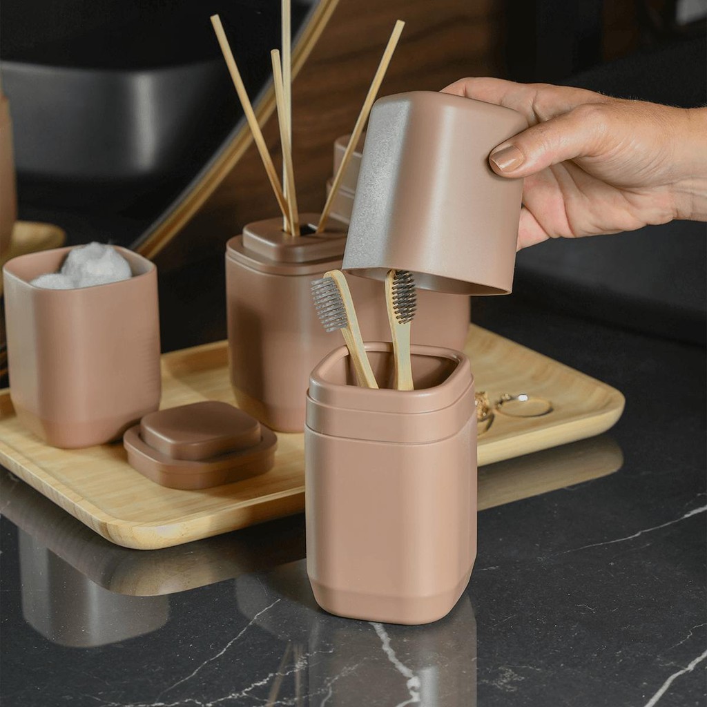 O porta escova de dentes Ou da Linha Aura protege suas escovas com uma tampa prática contra poeira e respingos. Compatível com diferentes formatos de escovas e cremes dentais, traz organização e praticidade ao dia a dia. Design moderno e minimalista e acabamento fosco, valoriza a decoração e transforma o banheiro em um espaço elegante e relaxante. INFORMAÇÕES TÉCNICAS Dimensões: LxAxP: 8x20x8 cm. Material: PS CUIDADOS Sugere-se higienizar com sabão neutro e esponja macia, evitando produtos abrasivos no processo de limpeza. CONTEÚDO DA EMBALAGEM 1 porta escova de dentes Ou da Linha Aura. SOBRE NÓS Somos apaixonados pelo que fazemos e utilizamos o design como meio de fazer você se sentir em casa onde estiver. Criamos produtos com carinho e cuidado para atender as suas necessidades diárias, levando bem-estar, aconchego e conforto para seu lar. Somos minimalistas e funcionais pois queremos que você tenha um estilo de vida mais leve e organizado, para atingir o máximo do seu potencial. Prazer, somos Ou.