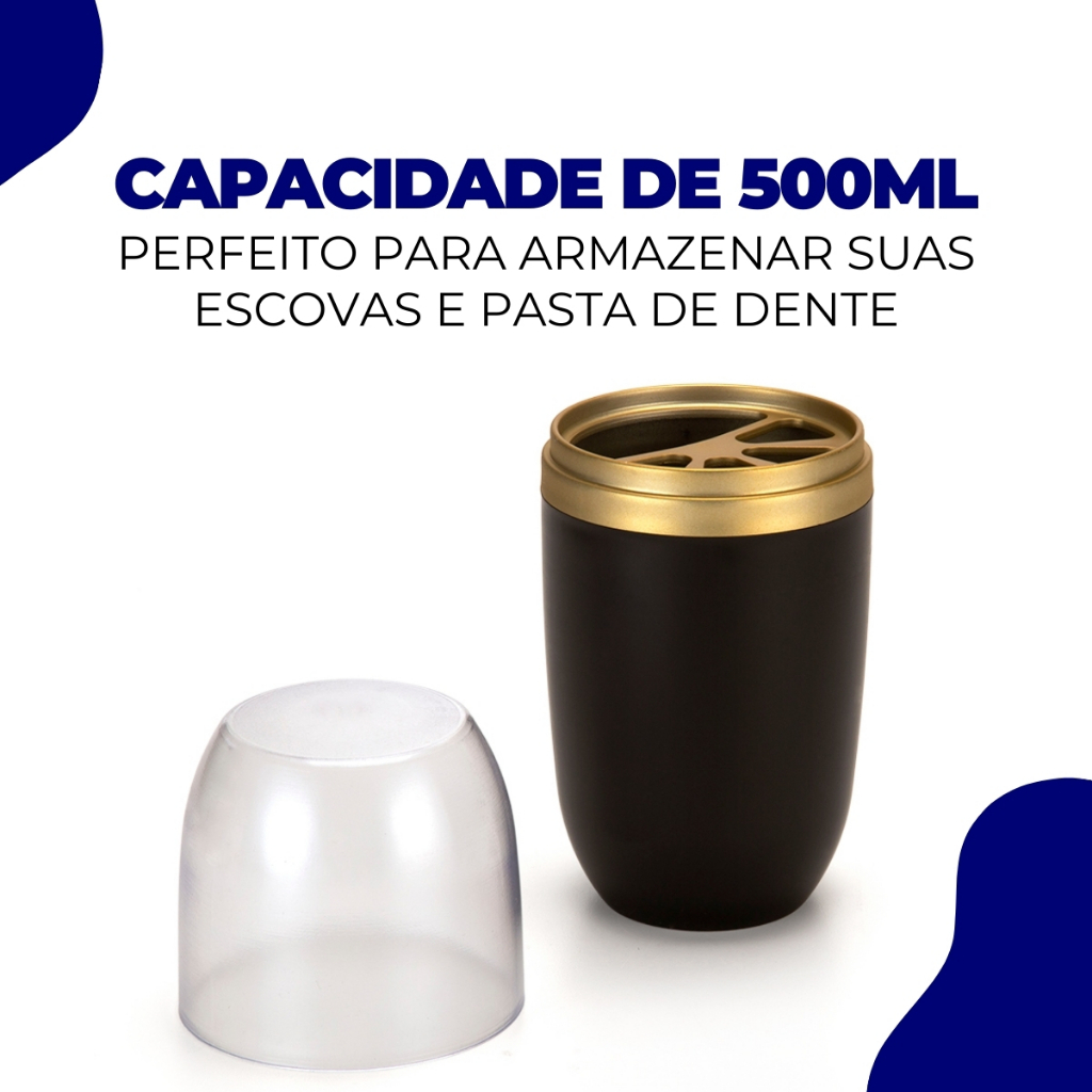 Porta Escovas De Dente Suporte Pasta Dente C/ Tampa Plastico Pia Banheiro Lavabo Viagem 500ml Arthi