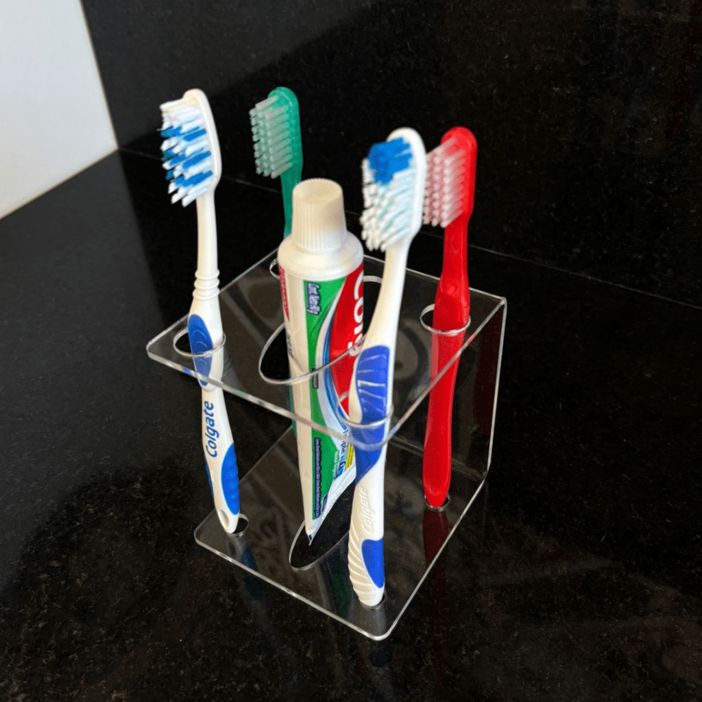 Porta Escovas Pasta Dente Acrílico Cristal Organizador Banheiro 3mm Suporte 4 Escovas Decoração