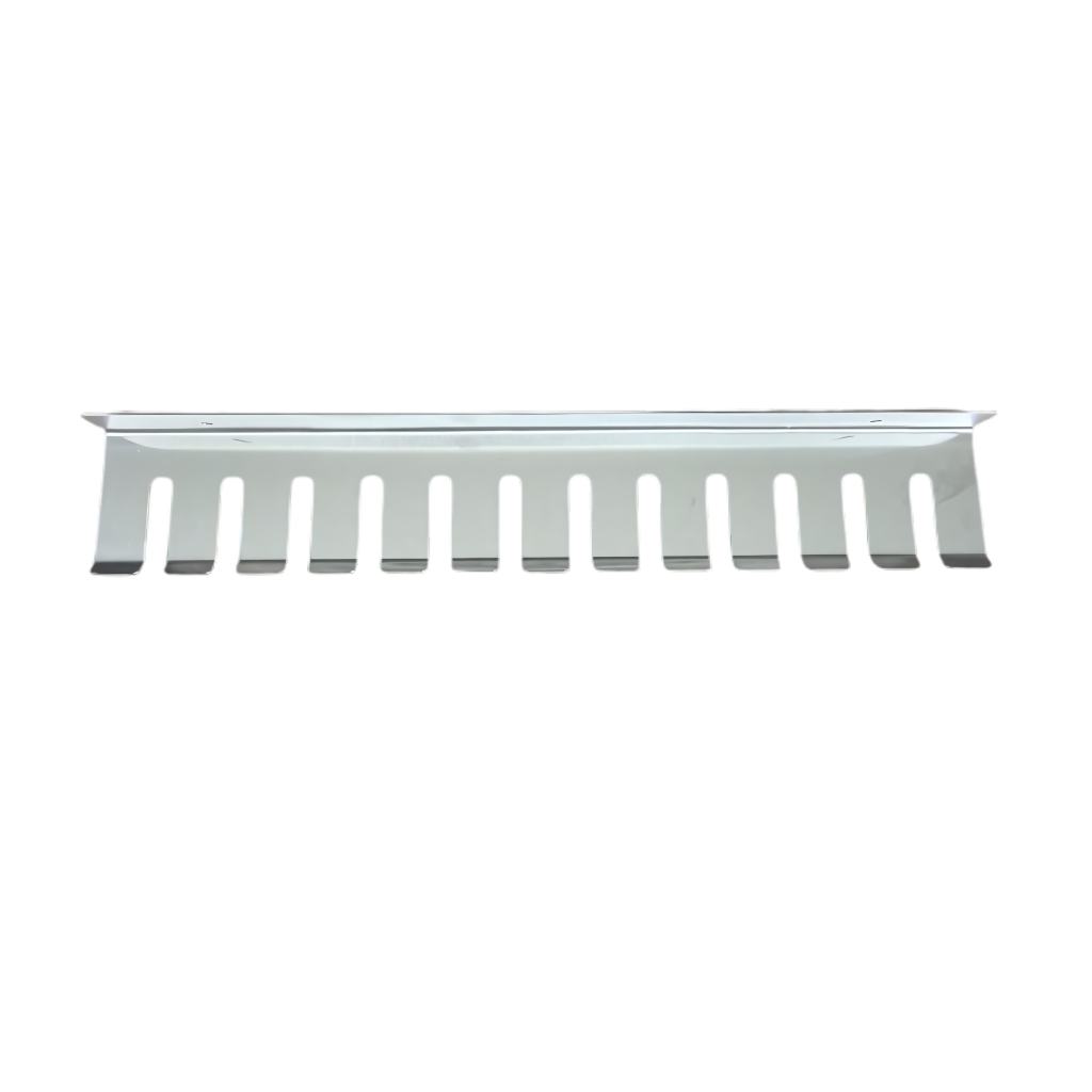 SUPORTE PARA ESPETOS DE PAREDE EM AÇO INOX VOCÊ VAI ADQUIRIR UM ÓTIMO PRODUTO, DE QUALIDADE, TODO EM INOX COM BELO DESIGN, VAI DEIXAR SUA ÁREA DE CHURRASQUEIRA LINDA E ORGANIZADA Descrição do produto: Suporte para espetos de parede em Inox é um lindo acessório de decoração e ótimo para organização da área do churrasco e cozinha. Tem capacidade de 12 espetos/ou acessórios, dependo do tipo de espeto sua capacidade pode até dobrar. Vide fotos ilustrativas. Especificações: - Material: AÇO INOXIDÁVEL Contém: - 1 suporte - 2 parafusos - 2 buchas Dimensões: Peso aprox.: 400g Largura: 47 cm Profundidade: 8cm Altura: 3cm Profundidade da cavidade: 5,50cm Largura Cavidade: 1,2 Material: aço inox 430 ESCOVADO Quantidade de aberturas: 12 espaços para espetos