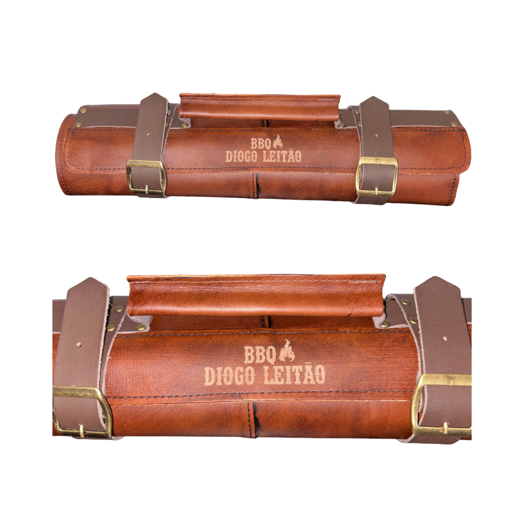 Porta Facas em Couro Legítimo - Modelo Econômico ou Profissional | Estojo Personalizado Eleve o transporte das suas facas com estilo, segurança e durabilidade! Nosso Porta Facas em Couro Legítimo é ideal para chefs profissionais, churrasqueiros, cozinheiros amadores e entusiastas da culinária que valorizam um estojo funcional e elegante. ⚠️ Aviso Importante Sobre o Couro e o Laser Prazo de preparação entre 4 e 6 dias úteis, podendo variar conforme a demanda. Por ser produzido em couro legítimo, podem ocorrer variações naturais no tom do couro em ambos os modelos. A gravação a laser também pode apresentar variações de tonalidade, ficando mais clara ou mais escura conforme a textura e densidade do couro. Essas diferenças são características naturais do material e tornam cada peça única. 📌 Sobre a Personalização (Laser) A personalização é feita a laser, portanto não tem cores. A tonalidade da gravação pode variar devido às características naturais do couro. Envie a arte em até 2 horas após a compra. Caso não seja enviada no prazo, o avental será enviado sem personalização. Porta facas econômico 40x43 cm Porta facas profissional 65x42 cm Opções Disponíveis: 🔹 Modelo Econômico – Compacto e Prático Ideal para quem precisa carregar poucas facas com segurança. Possui alça de mão reforçada, fechamento com fivelas em metal envelhecido e acabamento rústico. Compacto, leve e fácil de transportar. Estilo retrô e robusto, perfeito para o dia a dia. 🔹 Modelo Profissional – Espaçoso e Sofisticado Projetado para profissionais que precisam levar uma variedade de facas e utensílios. Equipado com alça de mão + alça tiracolo ajustável para maior conforto. Fechamento com fivelas resistentes e couro legítimo de alta qualidade. Acabamento refinado, ideal para chefs exigentes. 🎯 Destaques do Produto: ✅ Couro legítimo de alta durabilidade ✅ Estilo clássico com acabamento artesanal ✅ Personalizável com nome, logotipo ou iniciais ✅ Ótima opção para presente ✅ Produto 100% nacional 🧵 Feito à mão com atenção a cada detalhe. Garanta já o seu e transporte suas facas com segurança e personalidade!