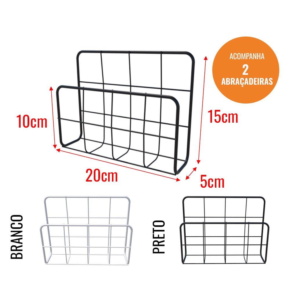 PORTA FENO PEQUENO E MÉDIO ARAMADO PARA COELHO PORQUINHO DA ÍNDIA CERCADO GAIOLA PET FÁCIL INSTALAÇÃO Esse Acessório para Porquinho da Índia deve fazer parte do todo o enxoval do seu amado pet. Seja Feno para Coelho ou Feno para Roedores, esse acessório vai servir perfeitamente bem. Ele é muito fácil de se instalar, já que com as duas abraçadeiras/fitas plásticas que acompanham o produto, basta você prender o Porta Feno no seu cercadinho. O Espaçamento é adequado para que o pet consiga comer tranquilamente. Características: - Cor: Branco/ Preto; - Material: Aço; - Resistente a corrosão; - Fácil Instalação; - Fácil limpeza. Medidas Aproximadas: PEQUENO: - Altura: 15 cm - Largura: 5 cm - Comprimento: 20 cm MÉDIO: - Altura: 15 cm - Largura: 5 cm - Comprimento: 30 cm TEMOS TAMBÉM: Porta feno de 30cm com malha de 2,5x5cm para evitar sujeiras e o desperdício de feno. Conteúdo da Embalagem: - 01 Porta Feno em Aço com 2 Abraçadeiras Plásticas