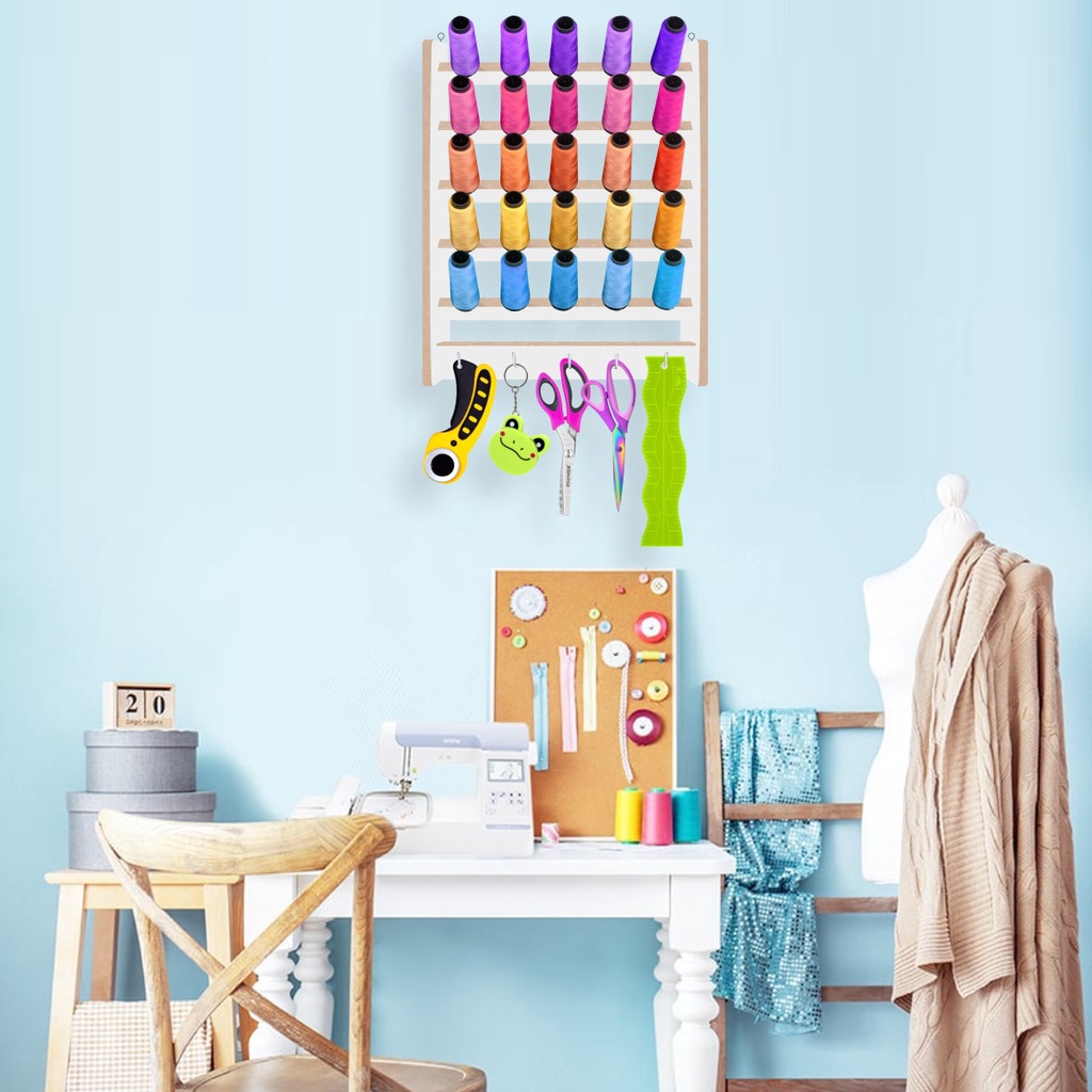 Porta Fio de Madeira 25 Cones Organizador Suporte de Tesoura e Cortadores