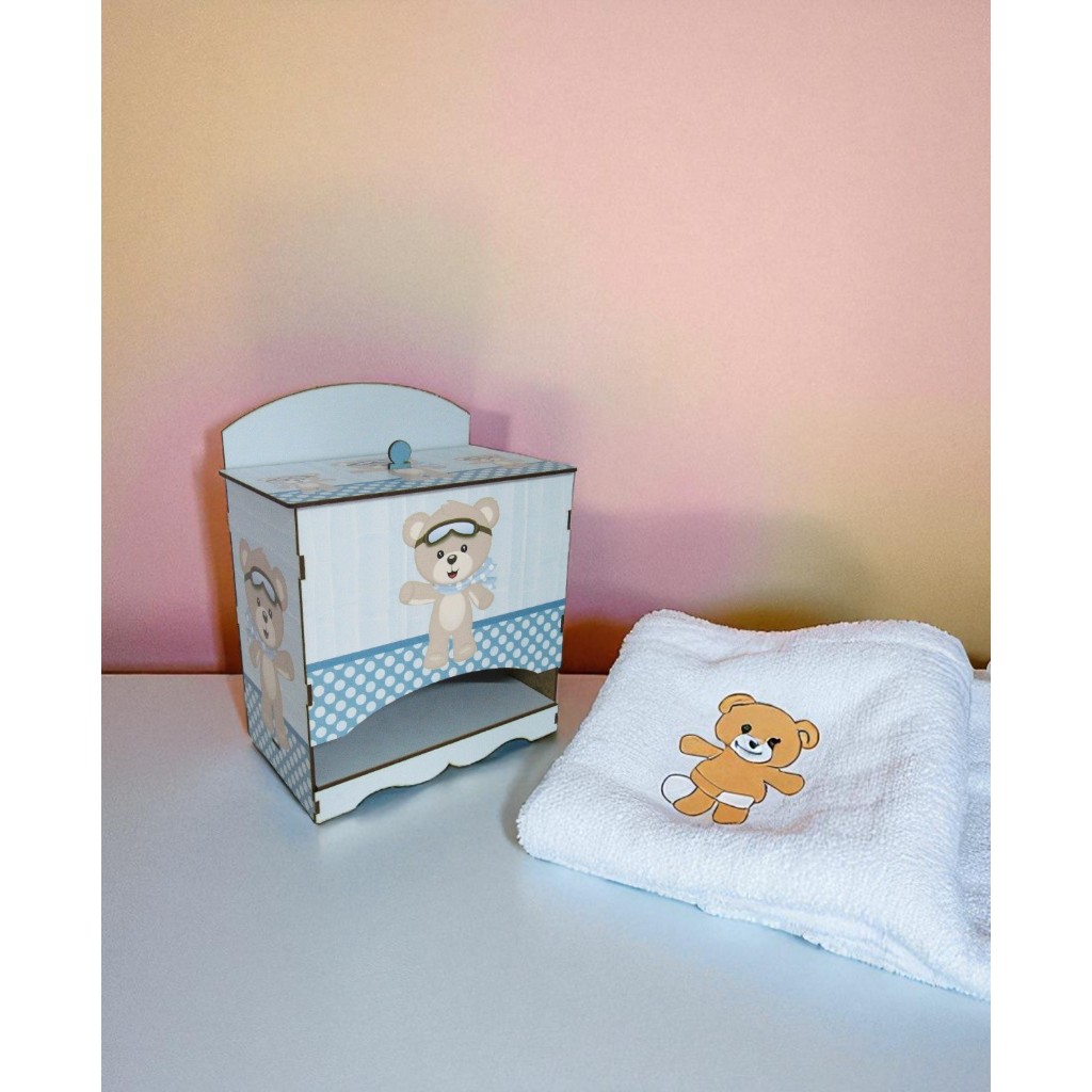 Porta Fralda Decoração Quarto Urso Azul Mdf