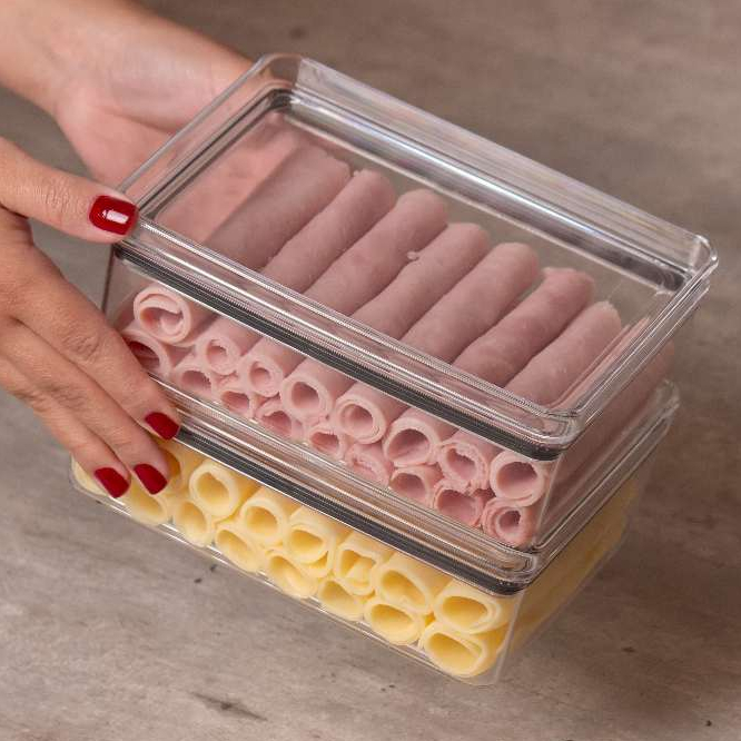 Porta Frios Geladeira Empilhável Duplo ou Un. Queijo Presunto Acrílico Transparente Vedação Multiuso
