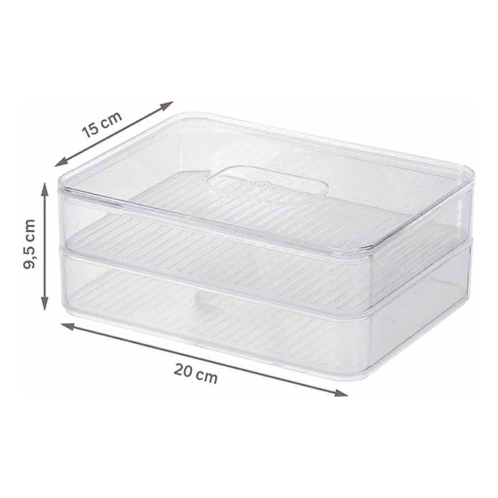 Olá, seja bem-vindo a Casa Meta Shop! Temos o objetivo de lhe ofertar uma grande variedade de produtos para Casa, Decoração e Bem-estar. Sempre procuramos garantir qualidade e um ótimo atendimento no pré e pós venda gerando a melhor experiência para você. Assim estabelecendo uma relação de confiança! Nosso processo de embalagem garante uma entrega rápida e segura, que só a Casa Meta garante. PORTA FRIOS CLEAR DUPLO NATURAL OU O Porta Frios Duplo Clear Fresh é o novo padrão de transparência para quem procura acondicionar e servir frios de forma simples e prática, promovendo beleza e funcionalidade para o dia a dia e ocasiões especiais. Empilhe, encaixe e enxergue facilmente os frios armazenados, mantendo tudo em ordem. Com design minimalista, ele combina com todos os tipos de cozinha, trazendo harmonização entre cor e transparência para facilitar a visualização dos itens sobre a mesa. Outro diferencial da linha está na sua superfície interna que possui uma grade e ranhuras, além de uma base removível que evitam o contato dos frios diretamente na superfície do produto. Perfeito para auxiliar na organização da sua geladeira e facilitar o seu dia a dia. CARACTERÍSTICAS - Design minimalista e transparente que facilita a visualização e organização dos frios. - Superfície interna com ranhuras que evita o contato direto dos frios com a base do produto. - Prático e funcional para acondicionar e servir frios, ideal para o dia a dia e ocasiões especiais. - Combina com todos os tipos de cozinha, proporcionando beleza e harmonia entre cor e transparência. - BPA free - Não levar ao micro-ondas. - Não levar ao freezer. - Não levar à lava-louças. INFORMAÇÕES TÉCNICAS - Altura: 9,5 cm - Largura: 15 cm - Comprimento: 20 cm - Peso: 0.319 kg - Material: PS (Poliestireno) + PP (Polipropileno) - Linha: Clear Fresh Qualquer dúvida estamos a disposição!