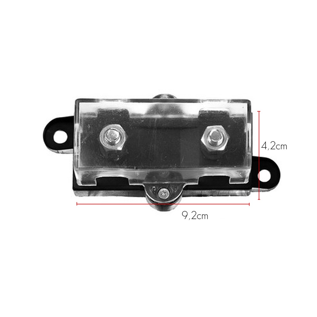 Porta fusível automotivo desenvolvido para sistemas de Som e sistemas elétricos em geral, com acabamento impecável e sua tampa de acrílico que permite um ótimo acabamento e deixa um excelente visual no seu projeto. Esse porta Fusível ainda conta com 3 entradas e 3 saídas de cabo o que permite utilizar ainda como um Bloco Distribuidor. Especifícações Técnicas: Modelo: Mega Tampa: Acrílico Aplicação: Sistemas de som Automotivo, módulo de som, proteção de bateria Peso: 80 gramas Origem: Nacional Parafuso: 8mm Conteúdo da Embalagem 01 Porta Fúsivel Mega