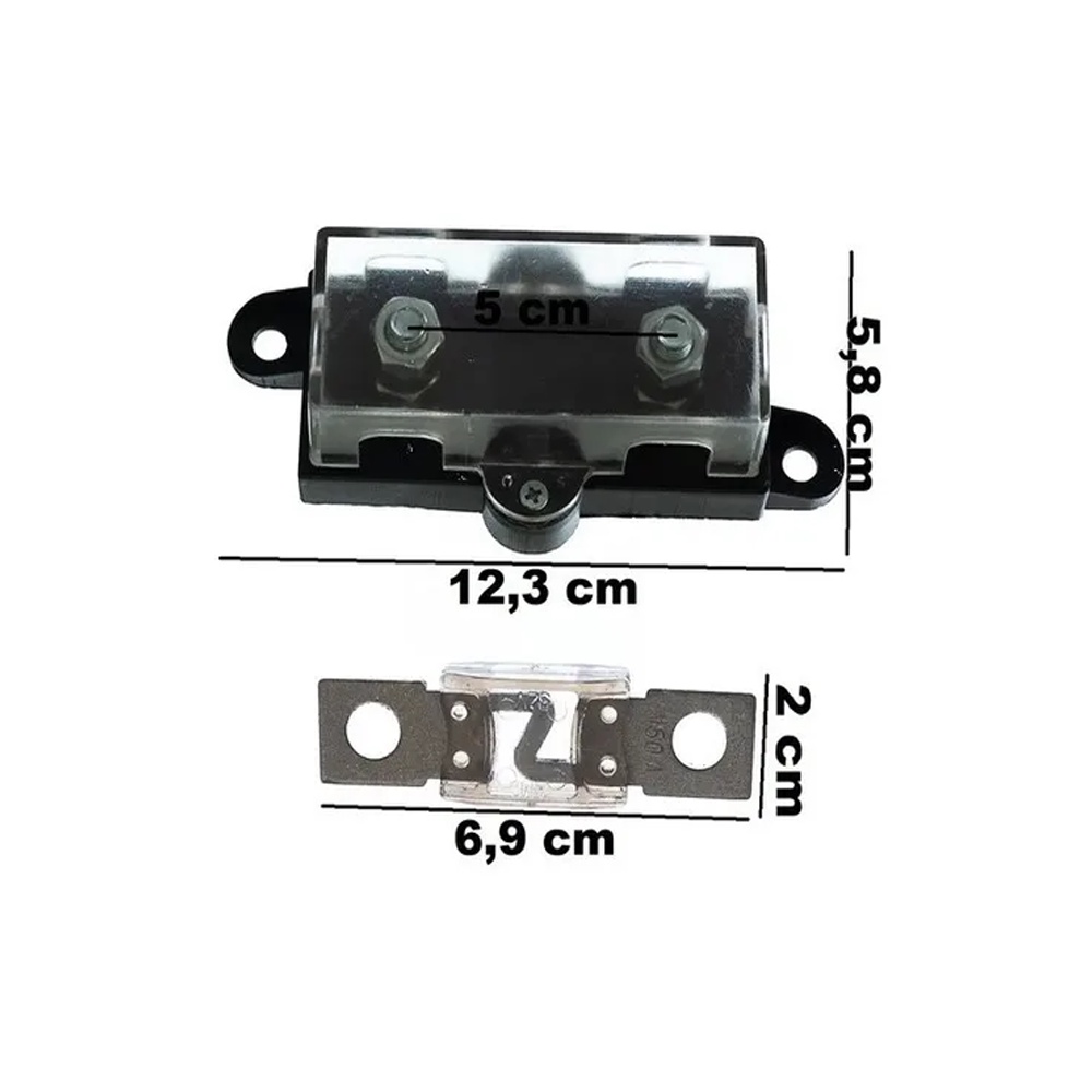 Modelo: Porta Fusível Potência Mega com Fusível • Marca: AMS • Código do Fabricante: 50006 Aplicação: • É um item que deve ser instalado no sistema elétrico da parte de som dos veículos para garantir que não haja sobrecarga no sistema elétrico e pode ser instalado também para proteger a bateria, sendo eficiente nas duas funções Função: • Sua função é, em caso de sobrecarga da corrente elétrica evitar que o circuito seja afetado e comprometa o sistema de som ou de bateria por completo Especificações Técnicas: • Voltagem Máxima: 32VDC • Temperatura média de operação: -40 a 125º C • Corrente Máxima: 2000 amperes Características: • Material do Fusível: Cobre ou Zinco • Material da Capa: resina de PC • Material do Porta Fusível: Metal (Liga de Zinco) Dimensões: • Comprimento: 123 mm • Largura: 58 mm • Altura: 39 mm • Fusível: 69 mm x 20 mm Importante: • Cor do fusível pode sofrer alteração conforme o lote de fabricação Itens Inclusos: 1 - Porta Fusível Potência Mega 1 - Fusível Mega