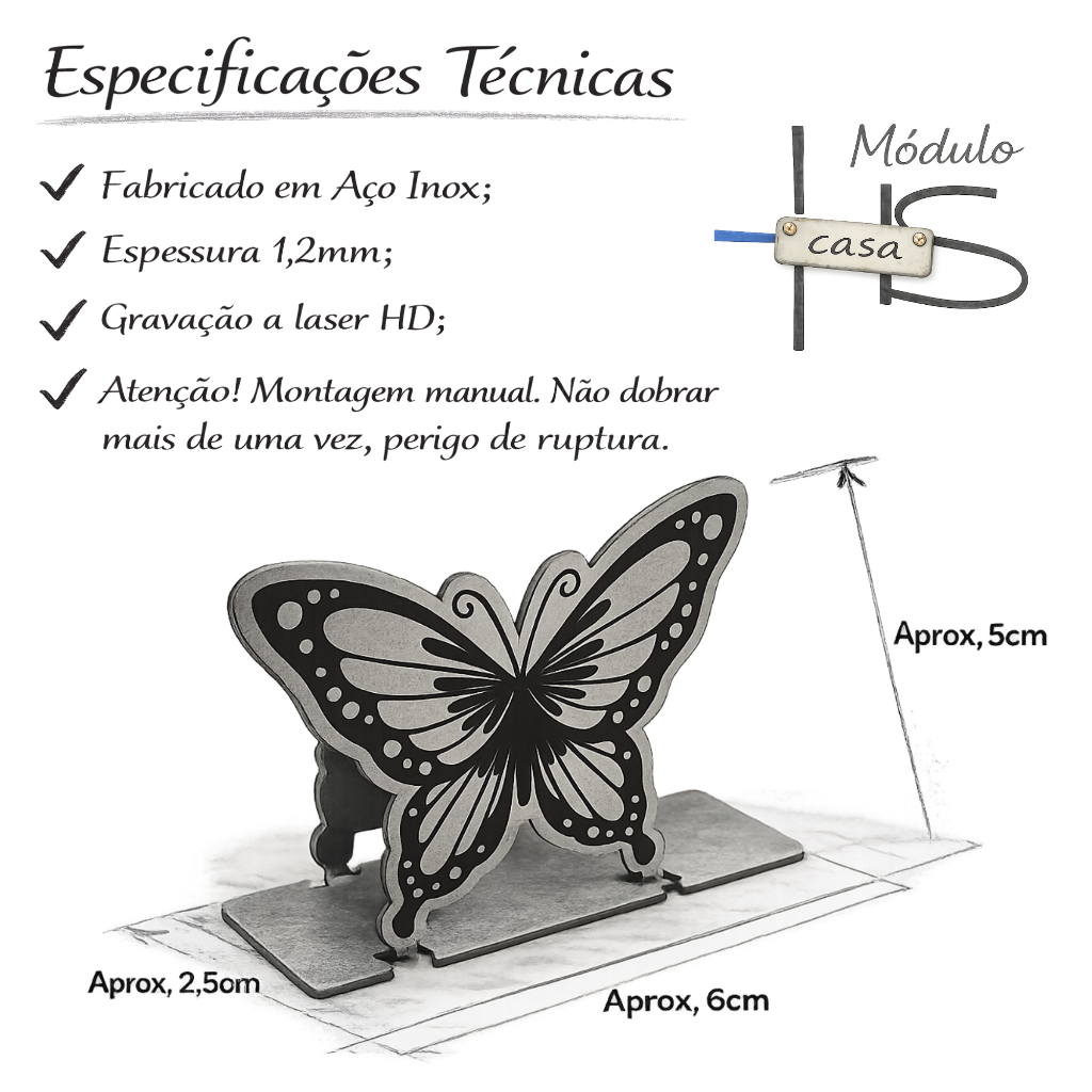 ATENÇÃO - Antes de comprar, saiba que nosso design é compacto! VEJA AS FOTOS ACIMA! (Tamanho - Altura:5 cm Largura:2,5 cm Profundidade: 6 cm ) Especificações Técnicas - Material: Aço Inox Desenho: Borboleta Espessura da chapa: 1,2 mm Peso: 45 g Conteúdo da embalagem: 1 unidade Nosso produto foi pensado para compor o ambiente com elegância e discrição. ⸻⸻⸻⸻⸻ A Módulo HS Casa é especializada no desenvolvimento de produtos em aço inox com foco em qualidade, resistência e acabamento de alto padrão. Trabalhamos com matéria-prima selecionada e processos de fabricação cuidadosos para entregar peças duráveis, funcionais e com design moderno, valorizando cada detalhe. ___________________________________ Porta Guardanapo em Aço Inox 1,2mm – Luxo, Mesa e Moderno para Decoração Se você procura um porta guardanapo em inox elegante e com acabamento de qualidade, este modelo é a escolha ideal. Produzido em aço inox 1,2mm, oferece maior firmeza e durabilidade, sendo uma excelente opção para quem deseja um porta guardanapo moderno que não enferruja e mantém a aparência impecável ao longo do tempo. O porta guardanapo em aço inox é indicado para decoração, trazendo mais organização e sofisticação para a apresentação da mesa. Seu design gourmet combina facilmente com diferentes estilos de composição. Além do visual elegante, o material em inox garante resistência à corrosão, fácil limpeza e longa vida útil. É um porta guardanapo funcional e ideal tanto para uso residencial quanto comercial. _________________________________ Especificações Técnicas Material: Aço Inox Desenho: Borboleta Espessura da chapa: 1,2 mm Altura: 5cm Largura: 2,5cm Profundidade: 6cm Peso: 45g Conteúdo da embalagem: 1 unidade OBS: - O produto irá planificado (não vai dobrado) - Material e Conservação: Este produto é fabricado em Aço Inox 430. Embora ofereça alta durabilidade, este tipo de aço é sensível à oxidação quando exposto por longos períodos a condições severas, como alta umidade, maresia ou agentes químicos. - Dica de Ouro para Longevidade: Para preservar o brilho e evitar a corrosão, recomendamos a limpeza periódica da peça. Uma técnica eficaz é a aplicação de uma camada fina de óleo de cozinha após a limpeza; isso cria uma película protetora que isola o metal do contato com o ar e a umidade, aumentando drasticamente a vida útil do seu produto, especialmente em regiões mais úmidas