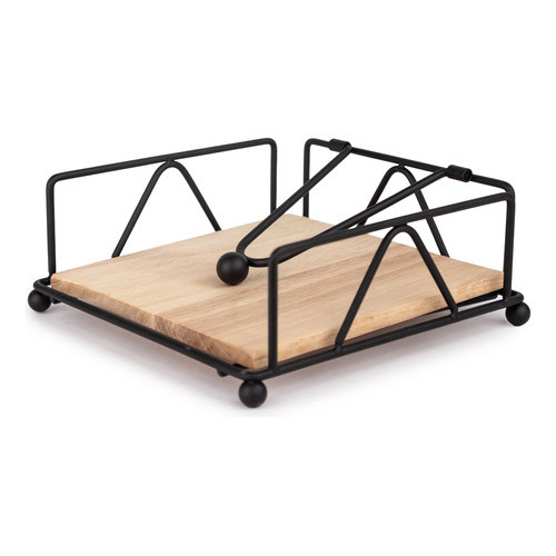 Porta Guardanapo de Papel Grande com Peso Suporte 18x18 Preto Fosco de Mesa de Metal e Madeira
