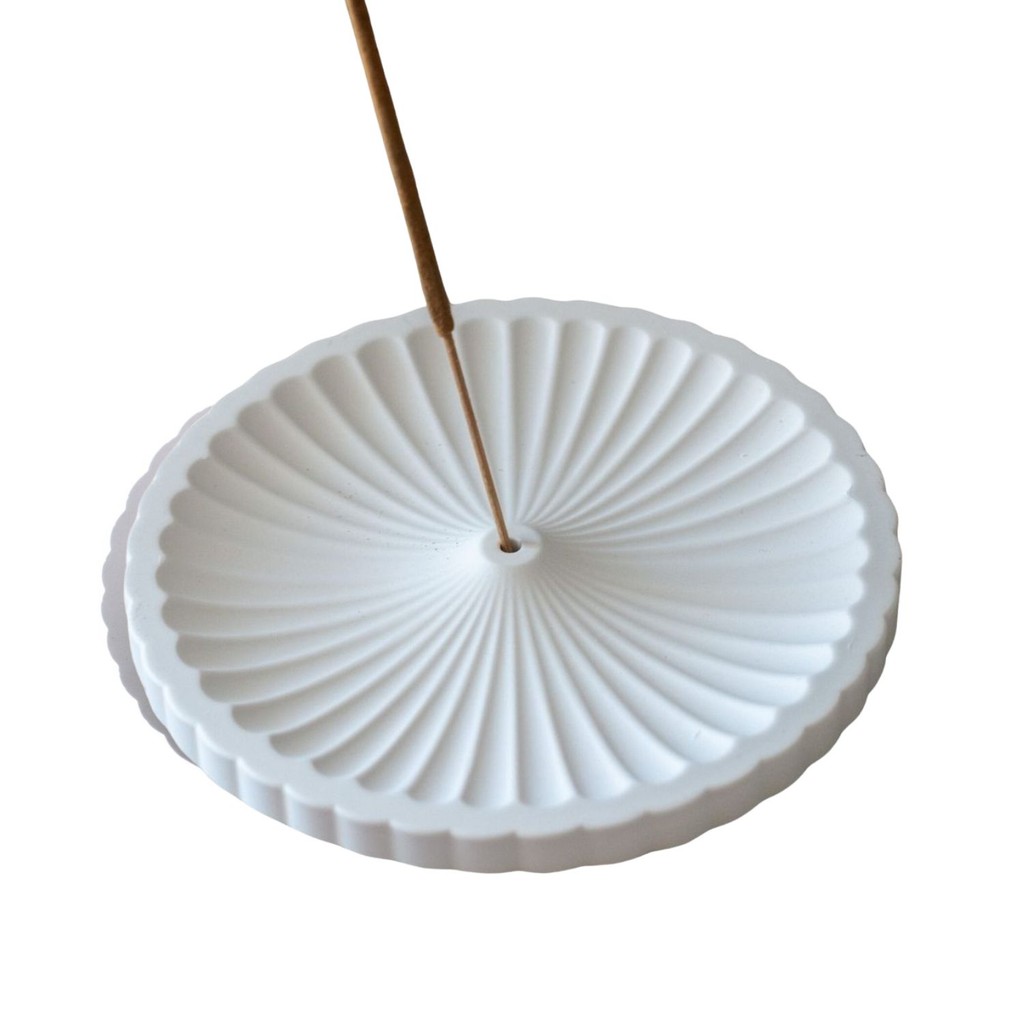 Porta Incenso Redondo Listras Artesanal 11cm Em Cimento