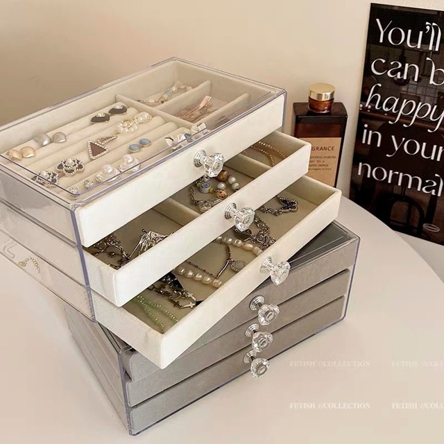 Porta Joia Acrílico Luxo Com 3 Camadas Brinco Anel Compartimento Caixa de Armazenamento De Jóias