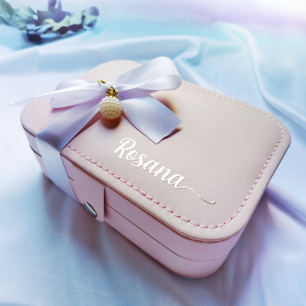 Porta Joia Personalizado com Nome em Dourado para Madrinhas de Casamento ou Presente Laço e Pingente