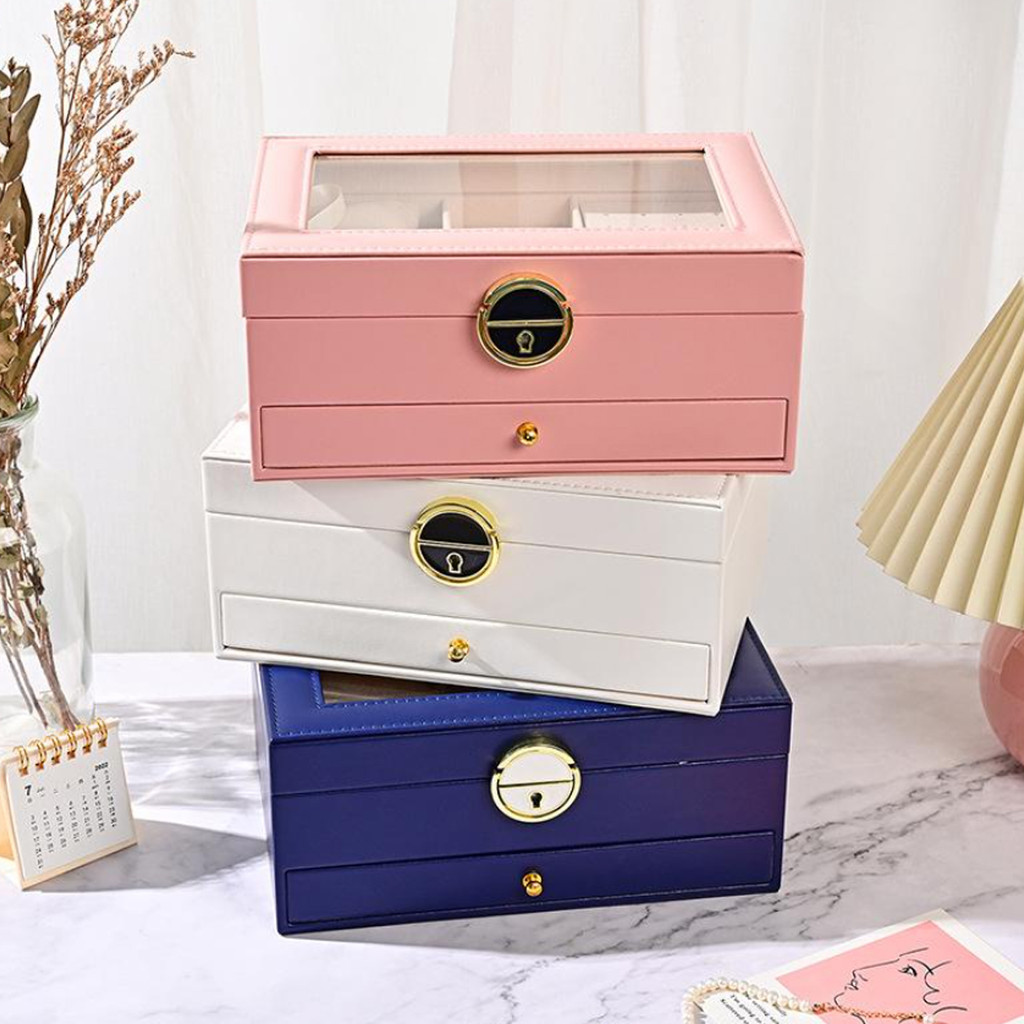 Porta-jóias 2 Andares Teto Transparente Tranca Caixa Jóias Variado