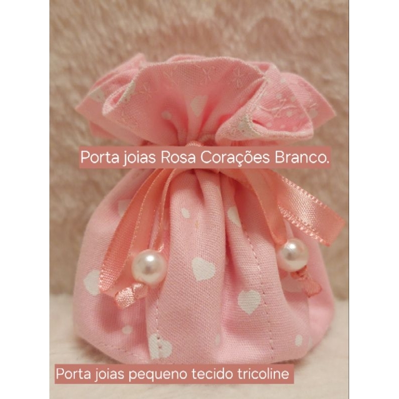 Porta joias/bijuterias 💎 pequeno em tecido tricoline. * Tamanho Pequeno: •Item aberto 23,5 cm. •Item fechado: 7cm altura 6.5cm diâmetro * Projetado para guardar suas joias favoritas de forma segura e organizada. *Tecido tricoline: Macio, resistente e fácil de limpar. *Compartimentos: Divididos casulos individuais para organizar anéis, pulseiras, colares e mais. *Compartimentos Divididos: Mantém suas joias separadas e facilmente acessíveis. *Tamanho Compacto: Perfeito para bolsas. * Não adiciona volume desnecessário. DESCRIÇÃO: Porta joias Tecido tricoline Corações coloridos com fundo claro e tricoline verde com poá branco. • Tamanho - Item fechado diâmetro e altura - 7cm X 6,5cm. • Tamanho - Item aberto diâmetro 23 cm. DESCRIÇÃO: Porta-joias - Borboleta tecido tricoline verde com borboletas em branco e tecido tricoline branco em poá verde *Tamanho - item fechado 6,5 cm diâmetro x 7cm cm altura. *Tamanho - Item aberto 23cm diâmetro. DESCRIÇÃO: Porta - Joias Tecido tricoline coração Rosa e poá. *Tamanho - item fechado 6,5cm diâmetro x 7cm altura *Tamanho - item aberto 22cm DESCRIÇÃO: Porta Joias Tecido tricoline coração lilás. *Tamanho - item fechado 6,5cm diâmetro x 7cm altura. *Tamanho - item aberto 22,5cm Descrição: Porta joias Tecido Tricoline Preto Poá Branco. • Tamanho - item fechado 6,5 cm diâmetro X 7cm altura • Tamanho - item aberto 23cm