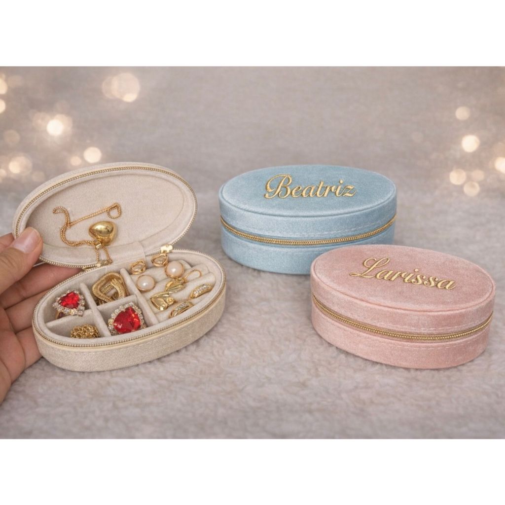 Porta Joias em Veludo Personalizado com Nome Estojo Luxo Anéis Brincos Colares Presente Casamento