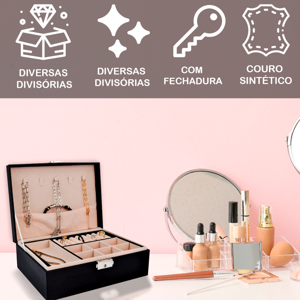 Porta Joias Veludo 2 Camadas Várias Divisórias Organizadora de Bijuterias Oi-0157