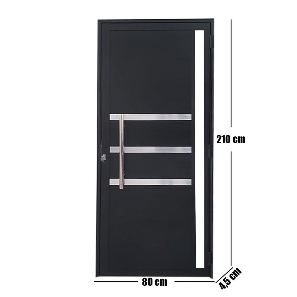 Renove a fachada da sua casa ou traga sofisticação para seus ambientes internos com a Porta Lambril de Alumínio Preto da Linha Veneza. Projetada para quem não abre mão de elegância e durabilidade, esta porta combina o visual imponente do acabamento preto com detalhes modernos que valorizam qualquer projeto arquitetônico. Design Sofisticado e Moderno O grande diferencial deste modelo é a união dos frisos horizontais com um elegante visor de vidro incolor, que permite a entrada de luz natural e proporciona leveza ao ambiente, sem comprometer a segurança. O conjunto é finalizado com um puxador em aço inox, criando um contraste premium com o alumínio preto e garantindo um toque contemporâneo à sua entrada principal, sala ou escritório. Alta Resistência e Durabilidade Fabricada em alumínio de alta performance, esta porta é ideal para locais que sofrem com a ação do tempo. Diferente de portas de madeira ou ferro, o alumínio não enferruja, não estufa e é altamente resistente à umidade e sol. Isso torna o produto perfeito tanto para áreas externas quanto internas, oferecendo uma vida útil longa com manutenção mínima. Segurança e Praticidade na Instalação A porta é entregue montada e pronta para instalação, incluindo batente de 4,5 cm, dobradiças reforçadas e fechadura tipo rolete. Dica de Instalação: Para assegurar o funcionamento correto e a vedação ideal, a porta deve estar perfeitamente em nível, prumo e esquadro. O fabricante recomenda não utilizar espuma expansiva, pois o uso incorreto pode manchar ou deformar o alumínio. Especificações Técnicas: • Cor: Preto. • Abertura: Lado Direito (visto de fora para dentro). • Medidas: 210 cm (altura) x 80 cm (largura). • Material: Alumínio e Vidro Liso Incolor. • Itens Inclusos: 1 Porta, Batente, Fechadura, Puxador Inox e Dobradiças. Importante: o produto não inclui itens decorativos ou acessórios mostrados nas imagens. Confira o título e a ficha técnica completa para garantir que sua compra seja exatamente o que você espera! Garanta o encaixe perfeito! Planeje seu ambiente com cuidado comparando as medidas do produto com o espaço disponível e reserve uma folga de até 2 cm para posicioná-lo com conforto. Peso (kg): 15 Garantia: 12 Meses Altura (cm): 210 Largura (cm): 80 Cor do Vidro: Incolor Possui Grade: Não Possui Vidro: Sim Tipo de Porta: Abrir Tipo de Vidro: Liso Cor do Batente: Preto Acompanha Trinco: Não Desenho do Vidro: Transparente Lado de Abertura: Direita Textura da Porta: Frisada Acompanha Batedor: Não Acompanha Batente: Sim Acompanha Puxador: 2 Origem do Produto: Nacional Tipo de Dobradiça: Simples Ambiente Principal: Sala de Estar Largura do Batente: 4.5 Acompanha Dobradiça: 3 Acompanha Fechadura: Sim Acompanha Guarnição: Não Material do Batente: Alumínio Material do Puxador: Aço Acabamento do Puxador: Inox Material da Dobradiça: Alumínio Tipo de Puxador da Porta: Externo Possui Isolamento Acústico: Não Acompanha Manual de Instalação: Sim Dimensão da Maquina da Fechadura: 25 Material Principal Construção e Acabamento: Alumínio Marca: Esquadrias Bergamo Cor: Preto Cor do Produto: Preto Itens Inclusos: 1 Porta Cor Predominante: Preto Linha ou Coleção: Linha 25 Tamanho do Produto: 210cm x 80cm