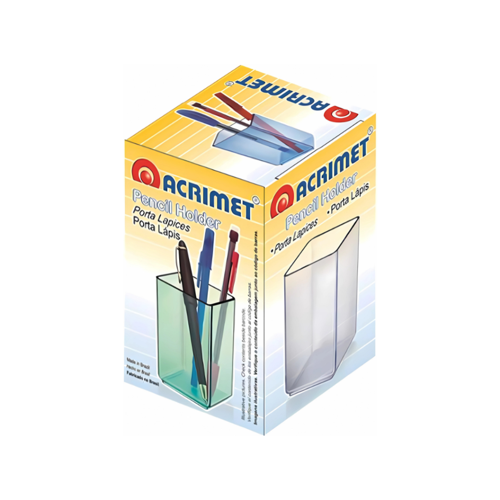 Porta-Lápis Acrimet 933 Acrílico Branco Organizador de Mesa Escritório Canetas Lápis Papelaria