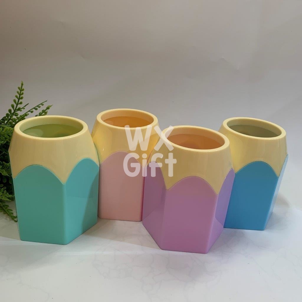 Porta lápis, canetas ou pincéis em formato de lápis, desmontável formando outro modelo de porta lápis. Um organizador cheio de estilo para você guardar seu material favorito. Também serve para guardar produtos de maquiagem. Excelente qualidade e acabamento. Fácil de Limpar Ótimo para escritório, organizar material escolar, artístico ou maquiagem Porta lápis decorativo Ideal para presentear! Especificações: Material: plástico Tamanho: 8, 5 X 6, 5 X10 cm