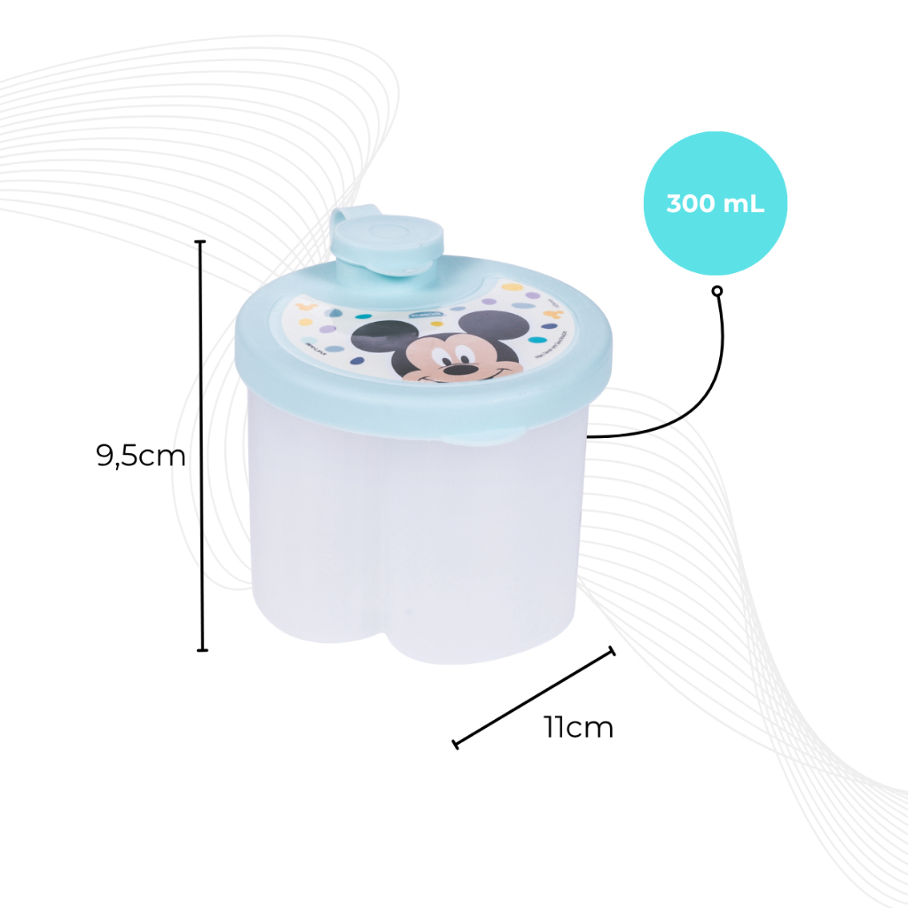 Porta Leite em Pó Dosador Pote 300ml com Tampa 3 Compartimentos Menino e Menina Plasútil
