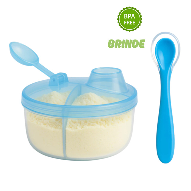 Porta Leite em Pó Para Bebê 3 Divisórias 150ml com dosador Livre Bpa - Porta Whey + Colher Silicone