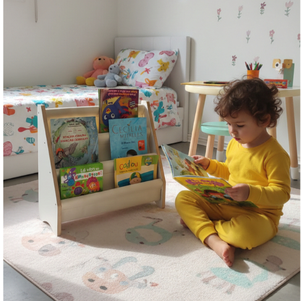 Porta Livro Infantil Montessori em MDF com Bolsos em Tecido Incentive o hábito da leitura desde cedo com um móvel pensado na altura da criança 💛 Nosso porta livros infantil estilo Montessori permite que a criança visualize as capas dos livros, estimulando autonomia, organização e desenvolvimento cognitivo. Ideal para quarto de bebê, brinquedoteca ou cantinho da leitura. ✨ DIFERENCIAIS DO PRODUTO ✔ Estilo Montessori – livros com capas visíveis ✔ Altura ideal para autonomia da criança ✔ Estrutura firme em MDF resistente ✔ Bolsos em tecido reforçado ✔ Design moderno e delicado ✔ Fácil montagem ✔ Compacto e funcional 📏 MEDIDAS Altura: 45 cm Comprimento: 47 cm Profundidade: 20 cm Tamanho ideal para organizar livros infantis sem ocupar muito espaço. 🎨 CORES DISPONÍVEIS Nude Azul Rosa Combina perfeitamente com decoração infantil moderna e delicada. 👶 BENEFÍCIOS PARA O DESENVOLVIMENTO Estimula autonomia Incentiva o hábito da leitura Desenvolve organização Facilita o acesso aos livros Deixa o ambiente mais acolhedor 🏡 IDEAL PARA: Quarto de bebê Quarto infantil Brinquedoteca Escola Cantinho da leitura 📦 INFORMAÇÕES IMPORTANTES • Produto enviado desmontado • Acompanha manual de montagem • Livros não inclusos