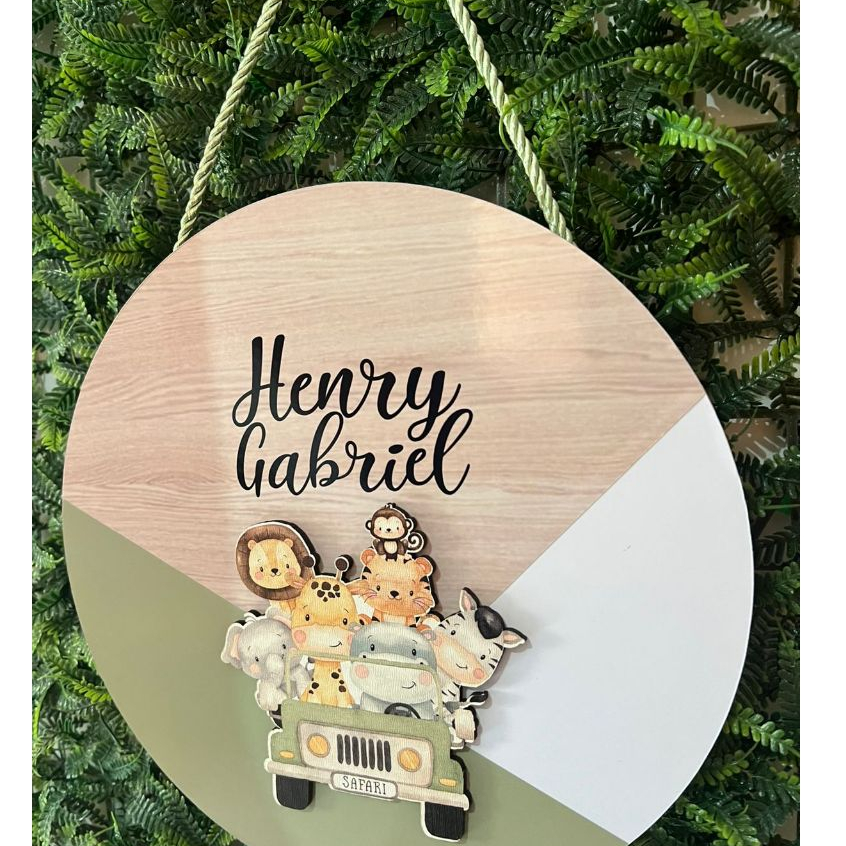 Porta Maternidade Tema Safari com o Desenho Safari em MDF 3D . ASSIM QUE FINALIZAR A COMPRA ENVIAR NOME DO PEQUENO NO CHAT ,CASO NÃO ENVIE, SERÁ PRODUZIDO SOMENTE COM O TEMA SEM NOME! Tamanho Ideal: 25 cm de Diâmetro – Perfeito para pendurar na porta ou expor na decoração do quarto. Material de Qualidade: Em MDF de 3mm, e cordinha para pendurar . Produzido com materiais duráveis, garantindo que a decoração fique linda por muito tempo. Dê as Boas-Vindas ao Seu Pequeno Aventureiro! Apresentamos o porta maternidade com tema safari, perfeito para decorar a porta da maternidade ou o quarto do seu bebê. Um toque especial e cheio de charme para marcar esse momento inesquecível! Personalização: Adicione o nome do seu bebê para tornar essa peça ainda mais especial! Cada detalhe é pensado para refletir a alegria da chegada do novo membro da família. (Enviar nome da criança no chat) Não perca a chance de celebrar esse momento mágico! Adicione ao carrinho agora e traga a alegria do tema safari para a vida do seu pequeno aventureiro!