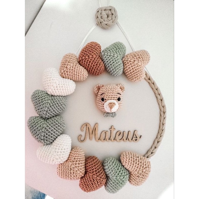 porta Maternidade Ursinho com Corações | guirlanda urso | nome do bebê crochê Amigurumi