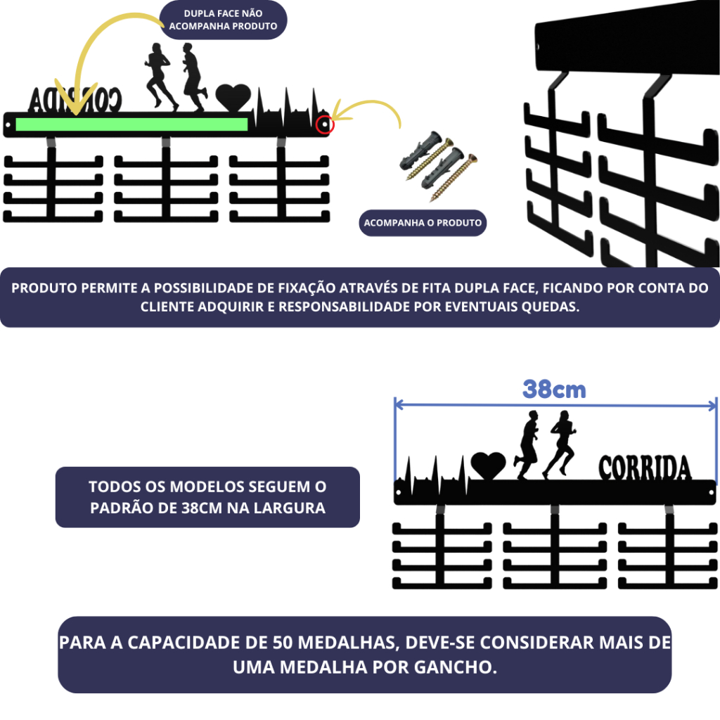 Porta Medalhas em AÇO para 50 Medalhas - UNIVERSAL