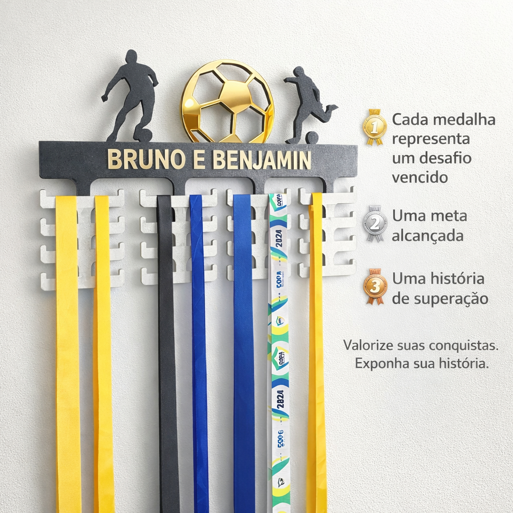 | Porta Medalhas Futebol Com Nome Personalizado Em MDF este produto | R$ 49,90 | 29% | 5.0/5 | — |