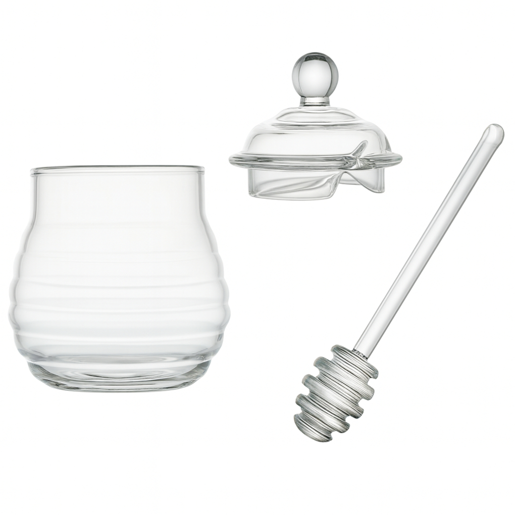 Porta Mel Meleira De Vidro Com Pegador Transparente 300ml
