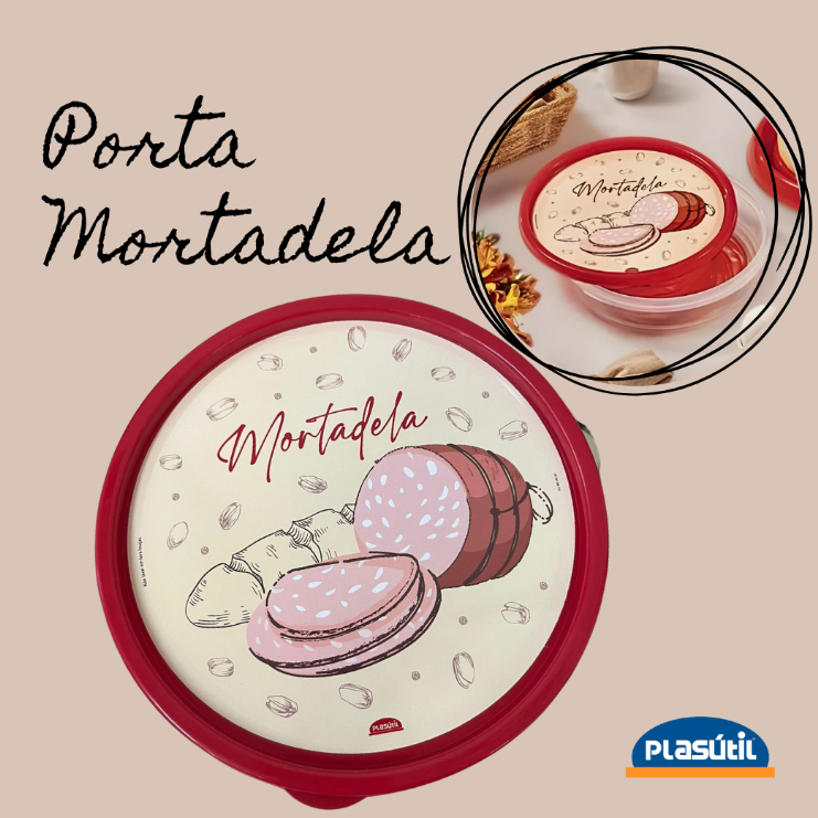 Porta metade Mortadela - Pote plástico com tampa para guardar frios 750 ML - Qualidade Plasútil