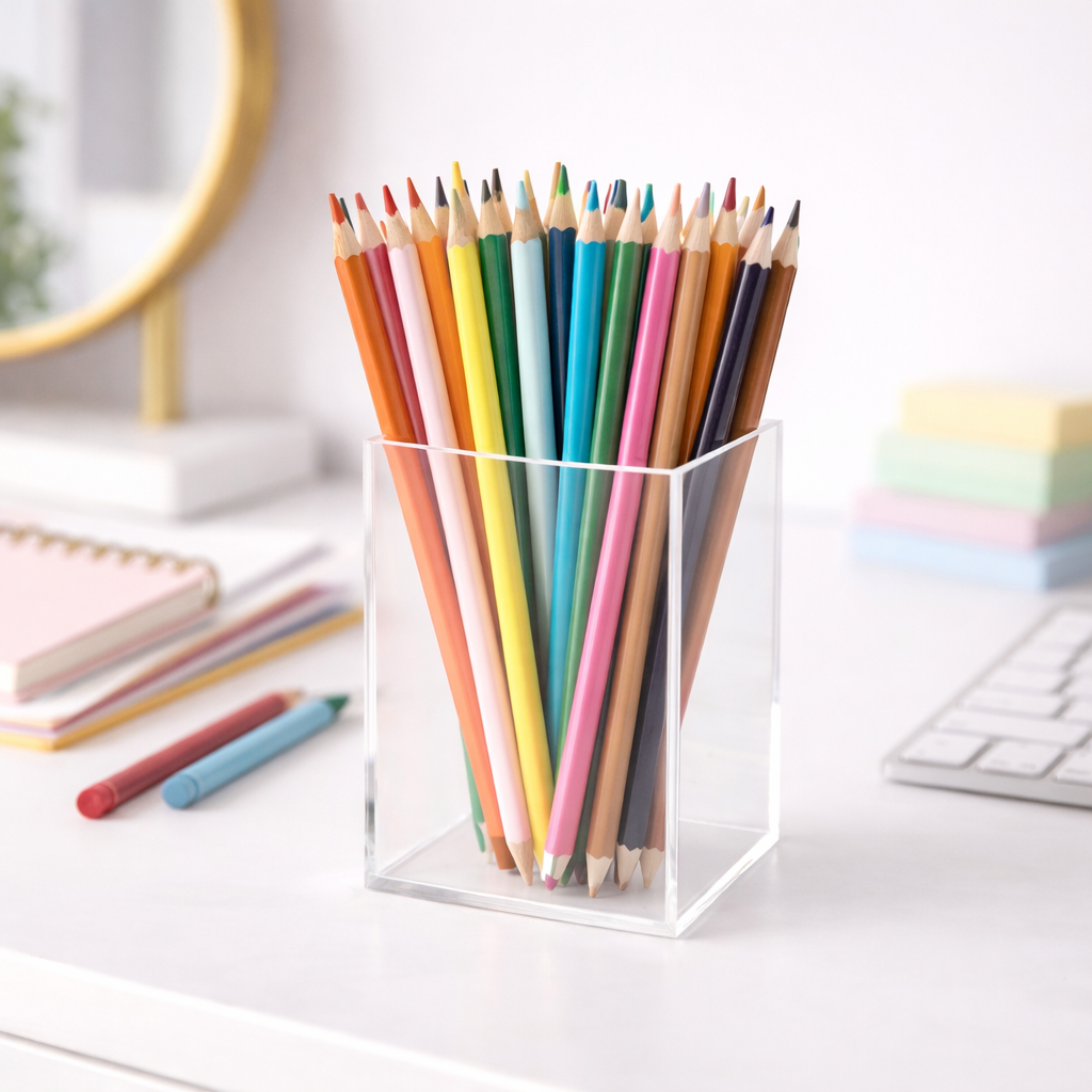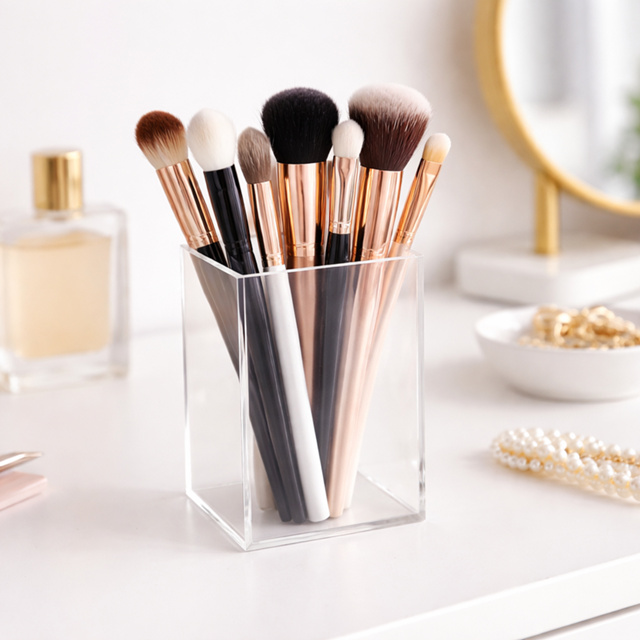Porta Objetos Multiuso Organizador Pincel Maquiagem Canetas Em Acrílico Transparente