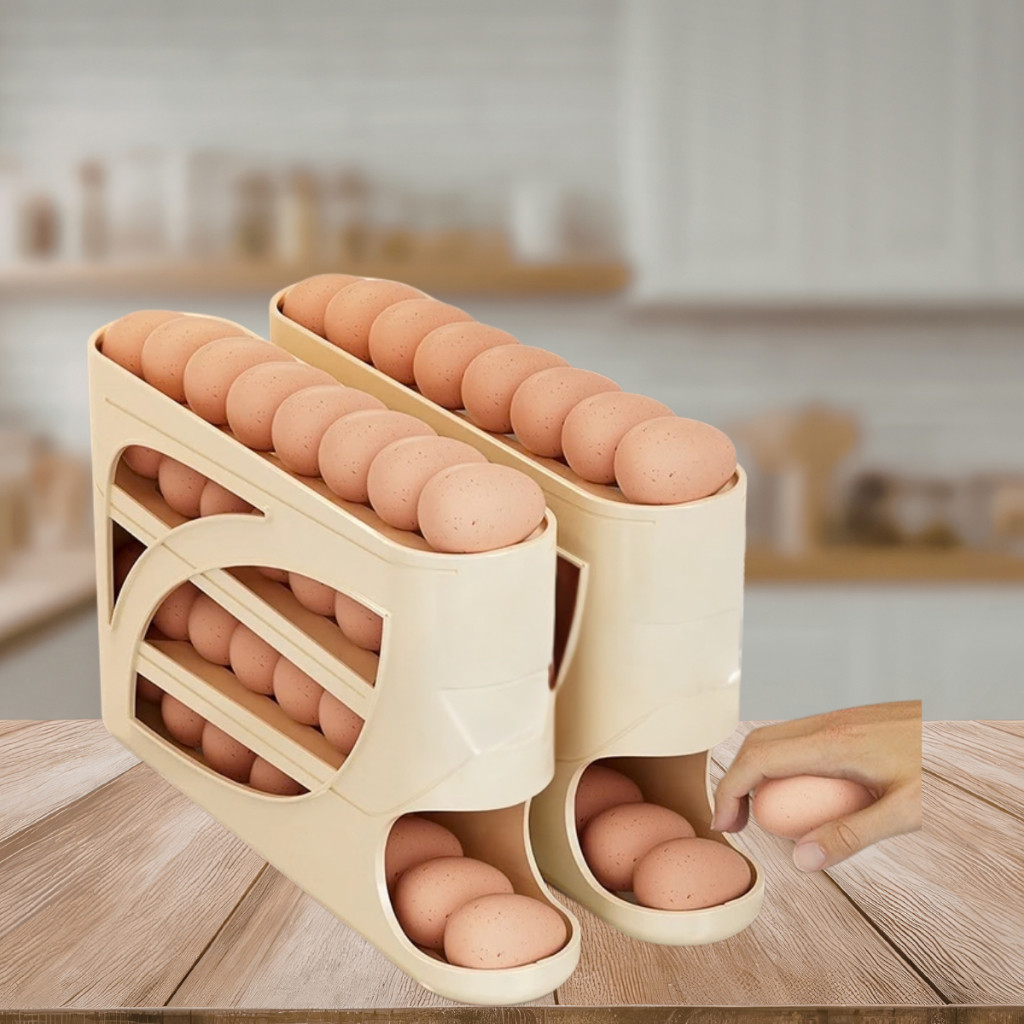 Porta Ovos 4 Andares Rolante em Plástico para Geladeira Organizador 20 a 30 Ovos