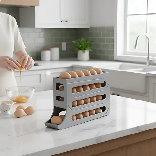 Porta Ovos 4 Andares Rolante para 30 Ovos – Organizador de Geladeira, Plástico Resistente, Fácil de Limpar