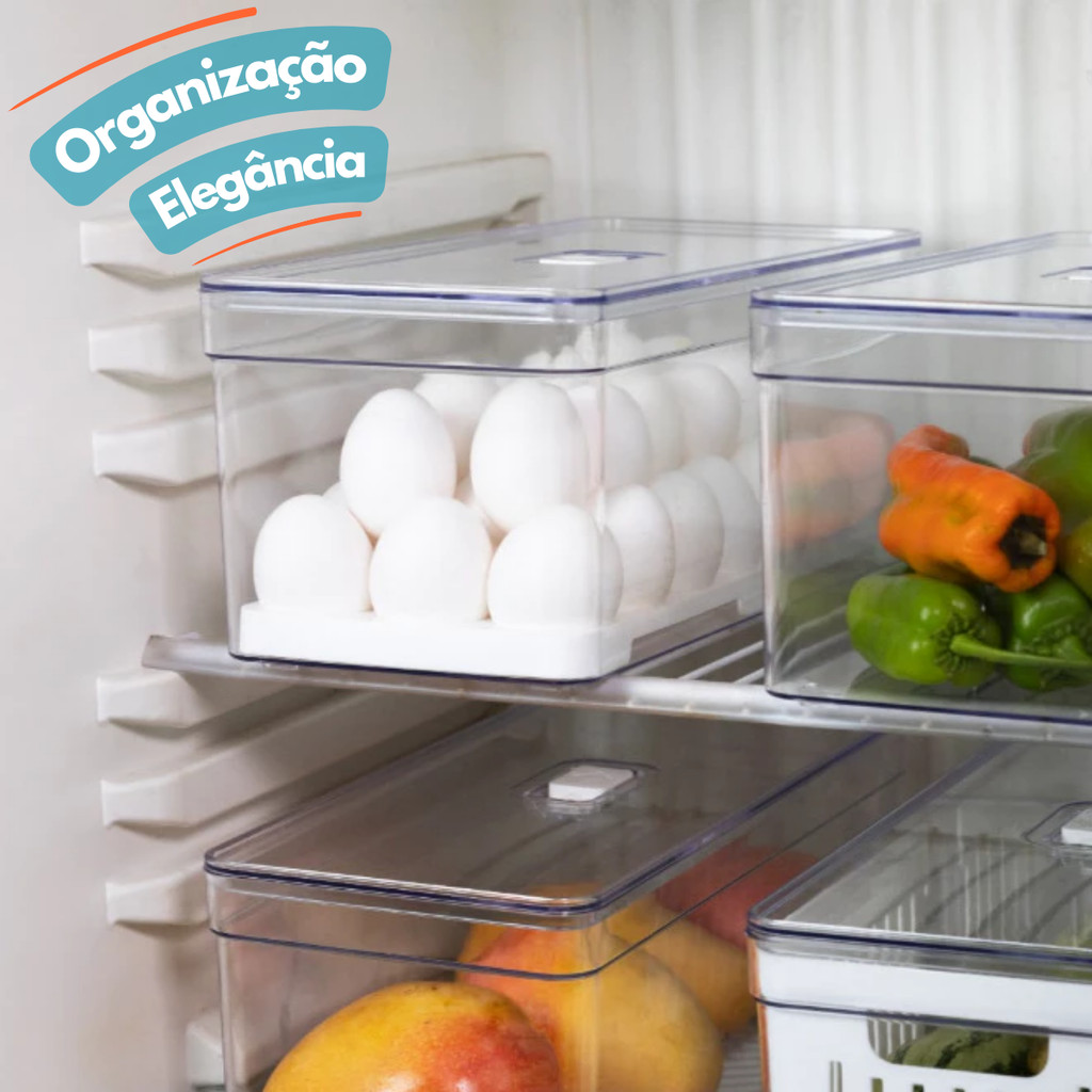 Pote com tampa Organizador de ovos e respiro, o cesto mantem os ovos sempre organizado e permitindo o fluxo de ar por todos os cantos, ajudando prevenir a deterioração ! Sua Cozinha, mais organizada, e bela como você merece ! ------ Envio Imediato ----- Vedação com Respiro : Preserve a qualidade dos alimentos com o fechamento e a válvula de regulagem de entrada de ar, que permite controlar a circulação de ar dentro do pote. Otimização de Espaço: O design slim e empilhável do pote garante organização e economia de espaço na geladeira ou no armário. Praticidade e Funcionalidade: A Grade interna facilita a organização de ovos e Legumes, enquanto a tampa transparente permite visualizar o conteúdo facilmente. Caso queira remover a grade pode utilizar com oque quiser ! Qualidade Premium: Fabricado em material resistente e livre de BPA, o Pote Elegance auto regulador Hermético oferece durabilidade e segurança para o armazenamento de seus alimentos. Especificações Técnicas: - Modelo: Organizador de Ovos em Acrílico com Tampa e Cesto Organizador. – Material: Acrílico. - Cor: Transparente. - Capacidade: 42 Ovos 21 Ovos - Garantia do vendedor: 30 dias.