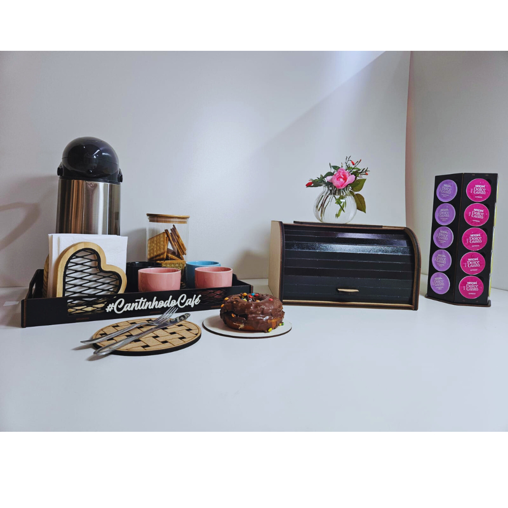 Porta Pão Cesto de Pães Tampa Deslizante Articulada Preta Decoração Funcional Cantinho do Café