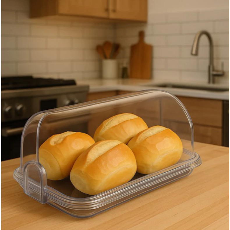 Porta Pão Cristal com Tampa Articulável Acrílico 30x20cm – Guarda Pães, Bolos e Doces