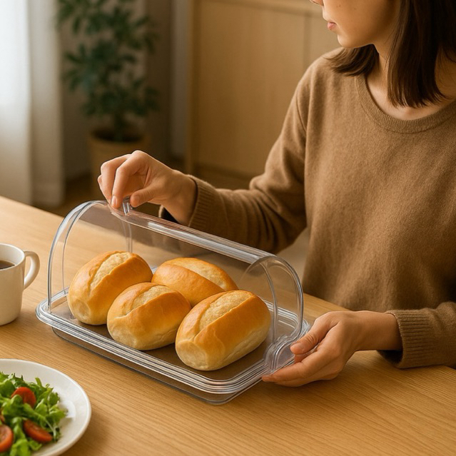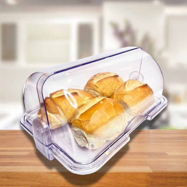 Porta Pão Cristal Com Tampa Articulável Para Mesa Acrilico Guarda Pães Bolachas Doces