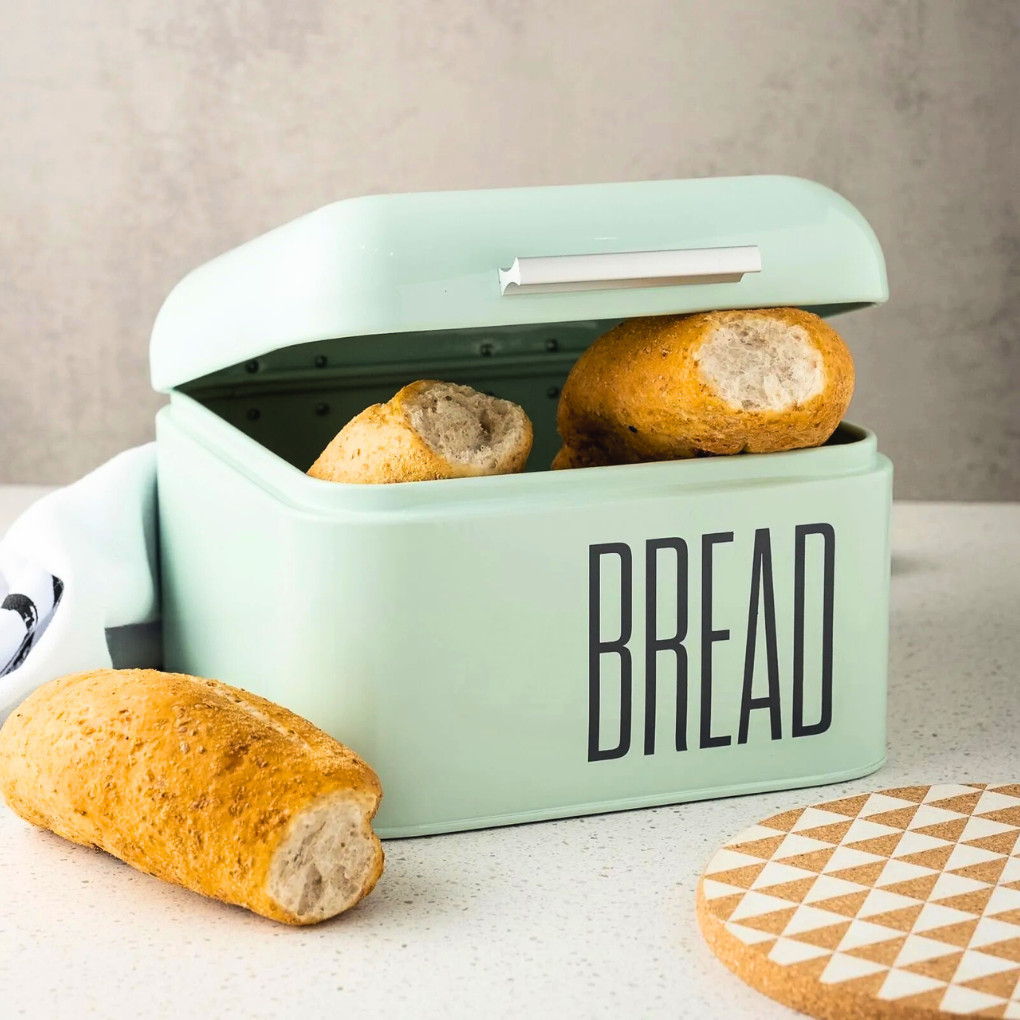 Perfeito para organizar e decorar sua cozinha com estilo! O Porta Pão Bread Menta combina praticidade e um design moderno, deixando seu espaço mais funcional e charmoso. Dimensões: 20cm x 20cm x 14 cm Material: Metal resistente Design compacto, ideal para manter os pães fresquinhos e ao alcance Estampa "bread" em cinza, dando um toque retrô e sofisticado