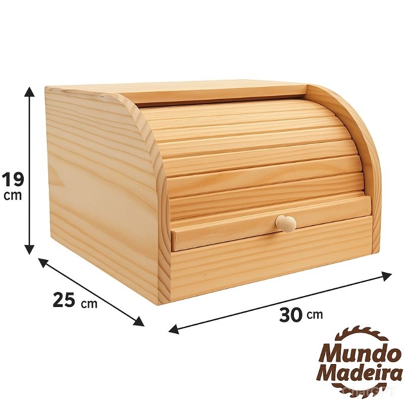 Porta Pão artesanal com tampa Retrátil Material: Madeira Pinus natural acabamento lixado, fundo em MDF Medidas: 30cm comprimento x 25cm profundidade x 19cm altura Ideal para armazenar pães com embalagem, armazenar pacotes já abertos de amendoim, bolachas, biscoitos entre outros. *OBSERVAÇÃO: utilizar pano úmido para limpeza. - Como o material é pinus, pode haver variações de manchas e nós, imperfeições naturais da madeira e pequena variação de medidas por ser artesanal, de 3 a 5 milímetros. Qualquer dúvida ou necessitando de mais informações, estou à disposição. Boas compras!
