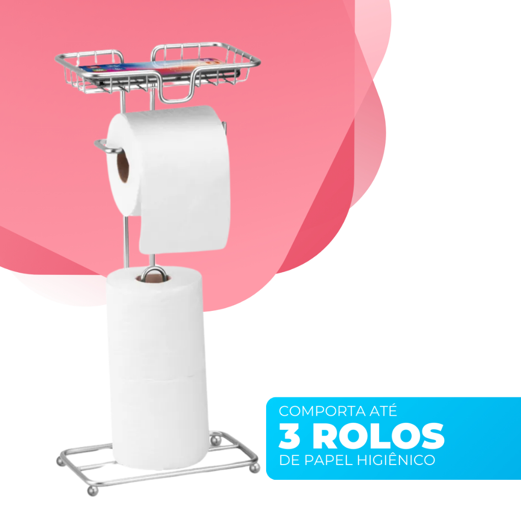 Porta Papel Higiênico Dispenser Porta Celular Banheiro Lavabo Decoração Cromado Arthi O porta papel higiênico de chão da Arthi é uma solução prática e elegante para o seu banheiro. Fabricado em aço de alta qualidade com propriedades antioxidantes, tem capacidade para até 3 rolos de papel higiênico. Seu design inteligente e moderno conta com um suporte integrado para celular, permitindo que você mantenha seus dispositivos por perto enquanto utiliza o banheiro. Este porta papel higiênico combina funcionalidade e durabilidade, sendo uma adição sofisticada e conveniente para o seu espaço. Dimensões: • Altura: 46,3 cm • Largura: 13 cm • Comprimento: 20,5 cm Conteúdo da Embalagem: • 01 Porta Papel Higiênico Importante: Garantia de 3 Meses. Valor Unitário. Imagens Meramente Ilustrativas. Não nos responsabilizamos pelo mau uso do produto