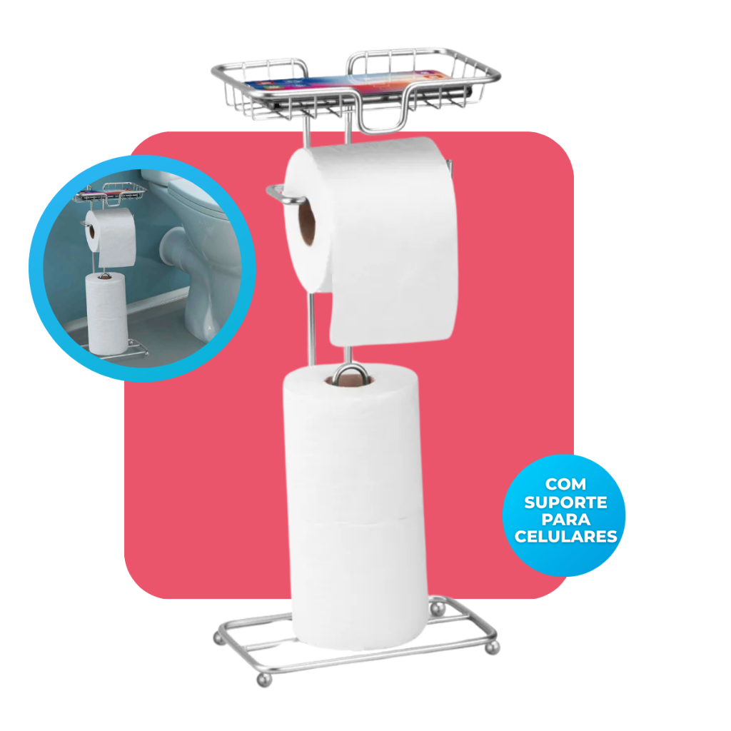 Porta Papel Higiênico Dispenser Porta Celular Banheiro Lavabo Decoração Cromado Arthi